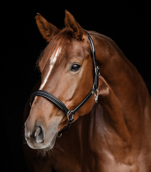 Dzięki potrójnej regulacji można go łatwo dopasować do głowy konia.