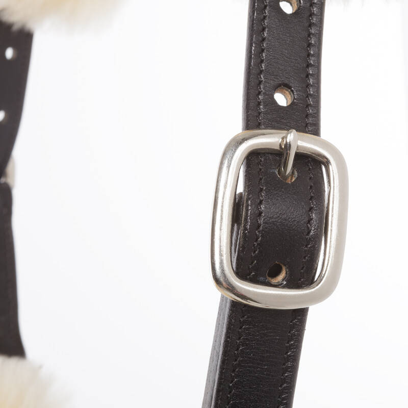 Elegancki kantar wykonany z miękkiej skóry i prawdziwego futra owczego.