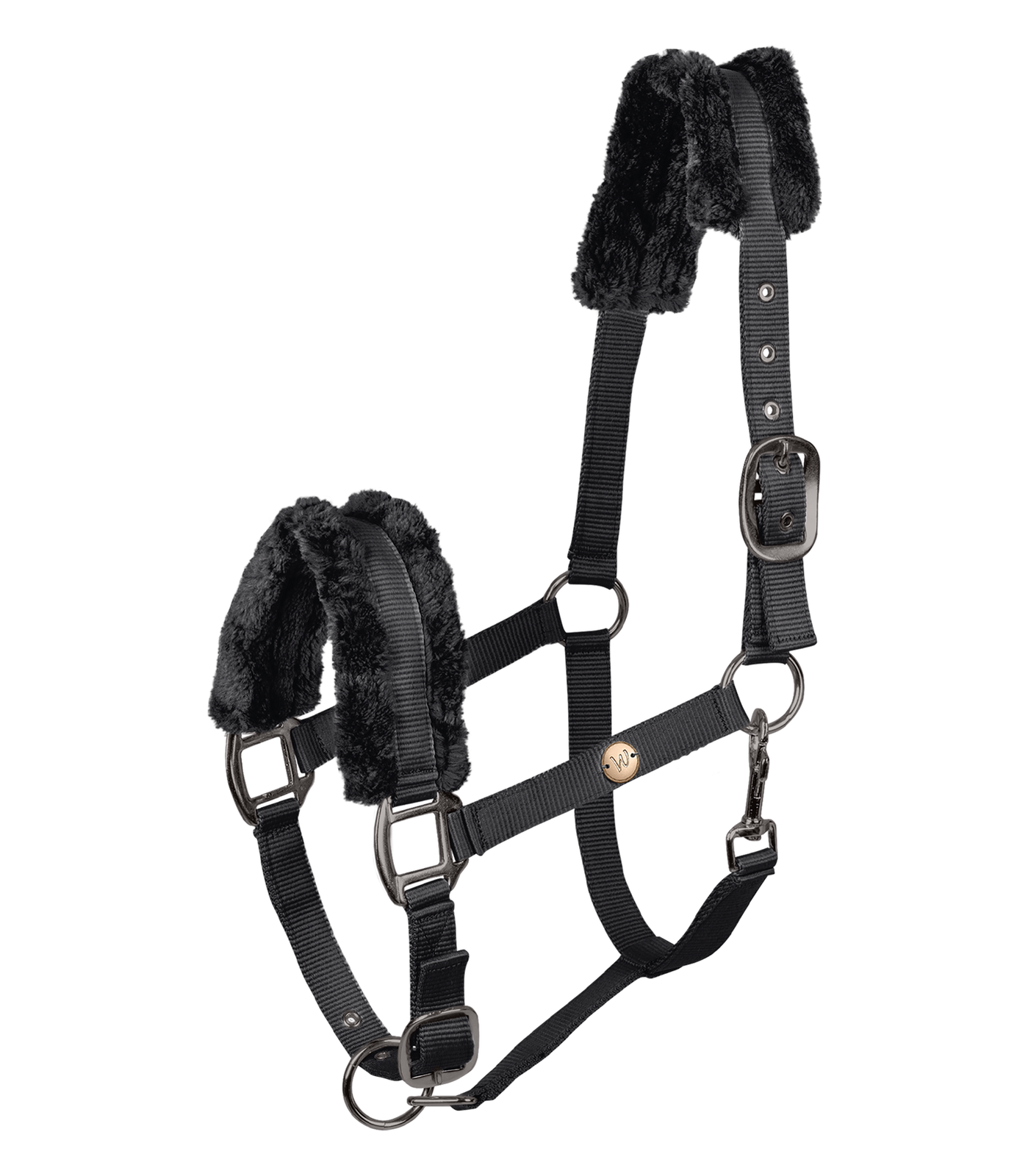 • Kantar ma miękkie futerko syntetyczne na nachrapniku i potylicy, które zapewnia komfort i chroni wrażliwe miejsca konia przed otarciami.