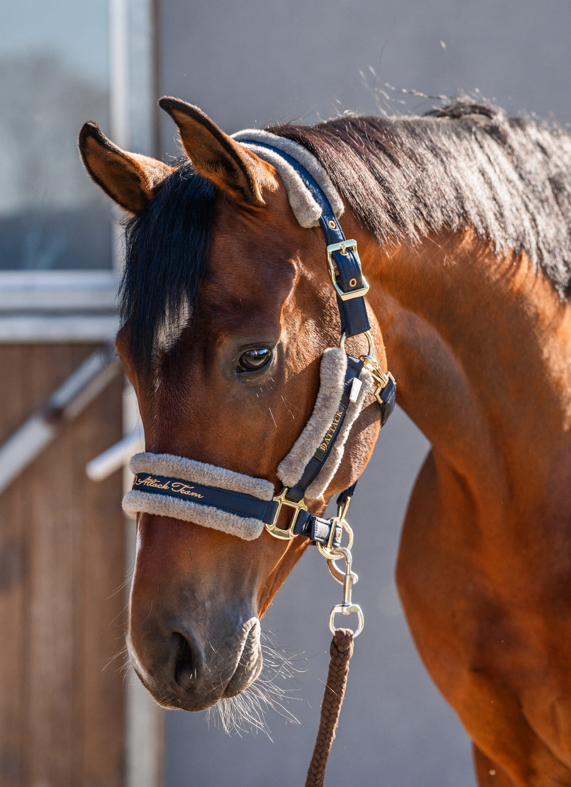 Trzypunktowa regulacja pozwala idealnie dopasować kantar do głowy konia.