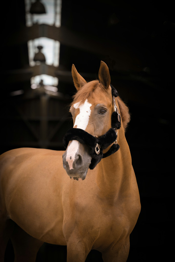 - Wyjątkowo miękki i puszysty kantar wykonany ze sztucznego futra, które zapobiega obtarciom.
