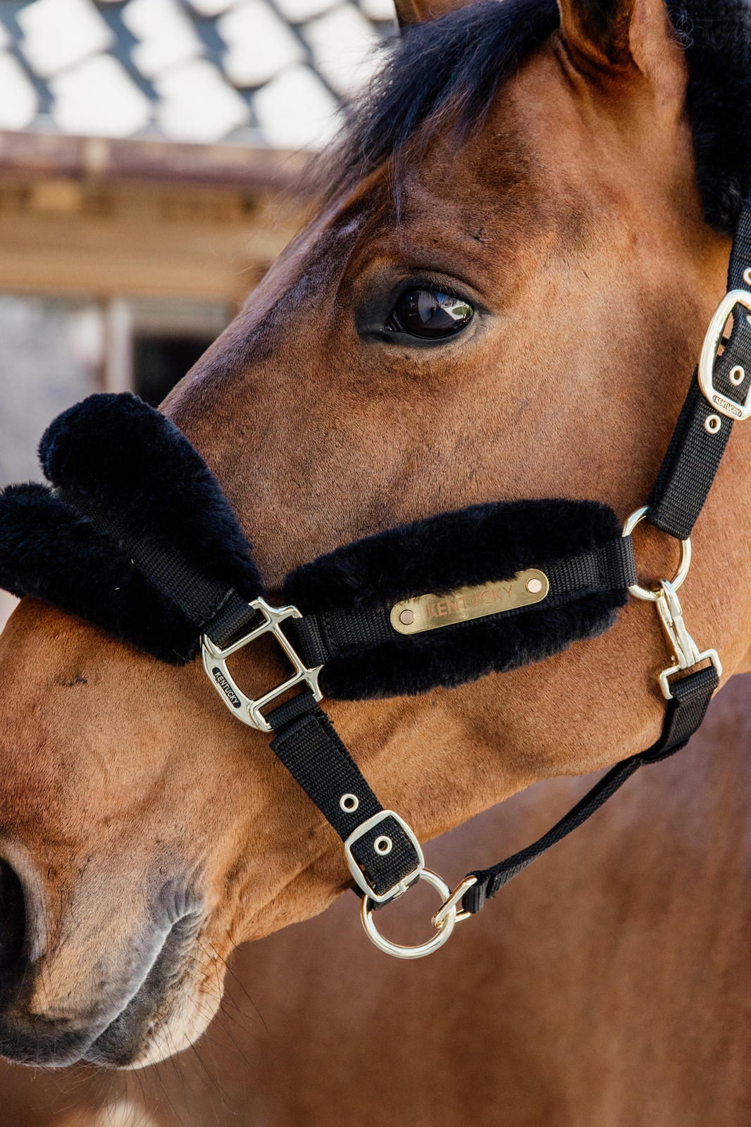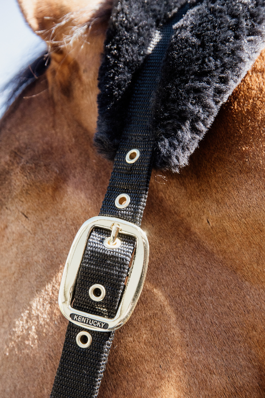 Złote sprzączki nadają mu luksusowy wygląd i idealnie komponują się z uwiązami Kentucky Horsewear.