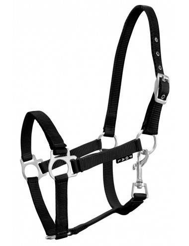 Źrebięcy kantar wykonany z miękkiego materiału, dopełniony srebrnymi okuciami.