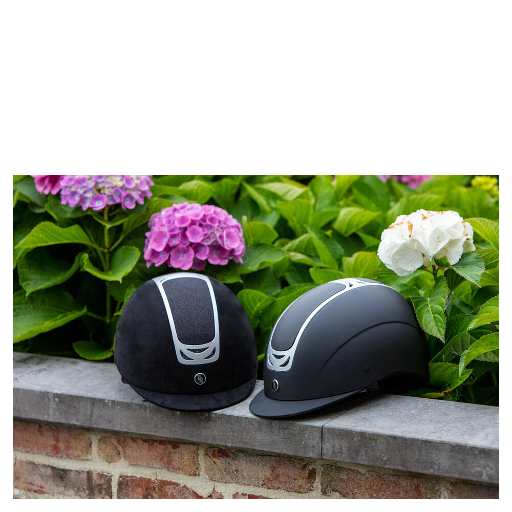 Jego górna część jest ozdobiona jest srebrną lamówką z wieloma otworami wentylacyjnymi.