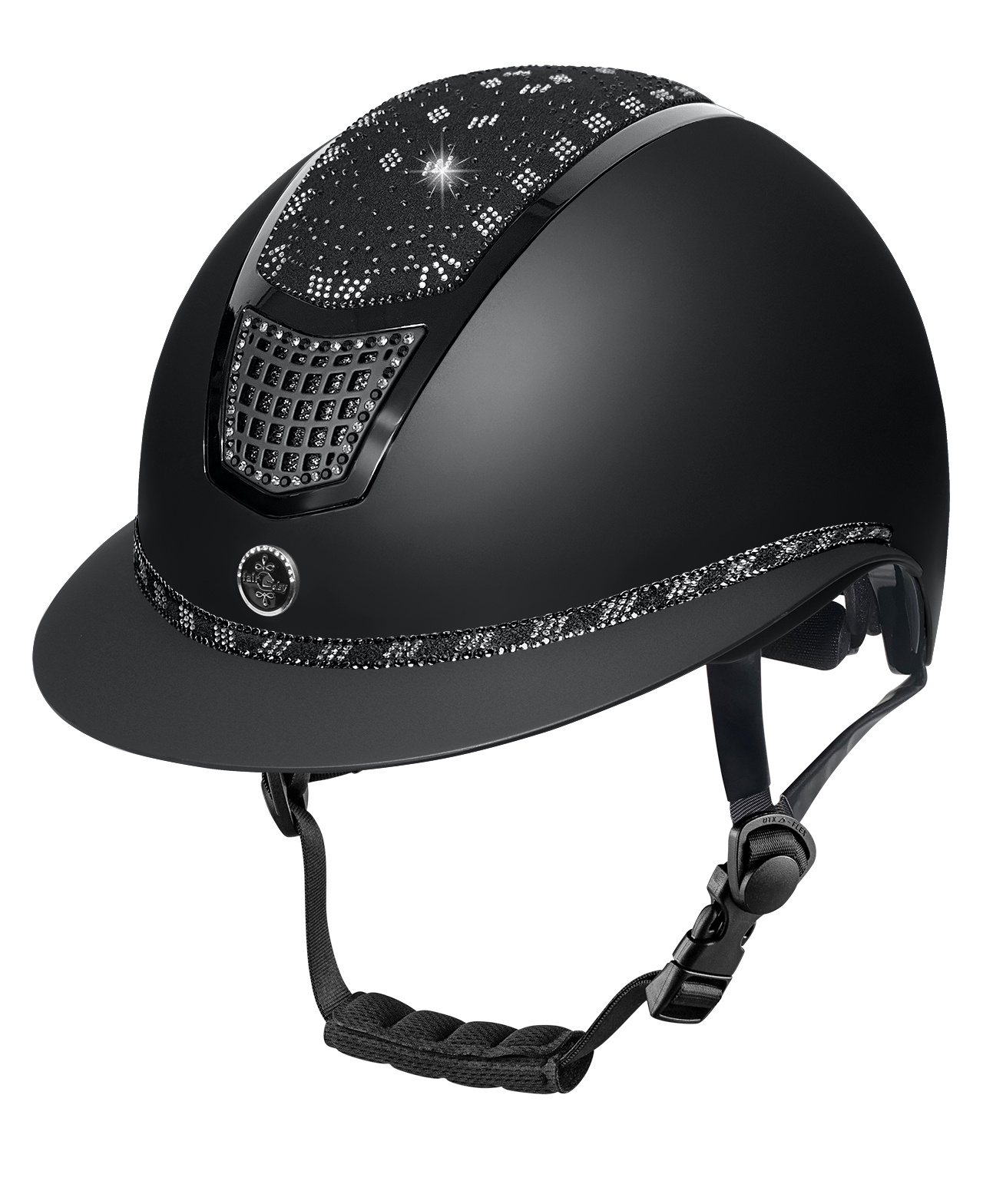 Model Quantinum 2.0 EOS MATT wyróżnia się matową skorupą połączoną z połyskującym topem wysadzanym drobnymi kryształkami oraz wstawką z kryształków przy mocowaniu daszku.