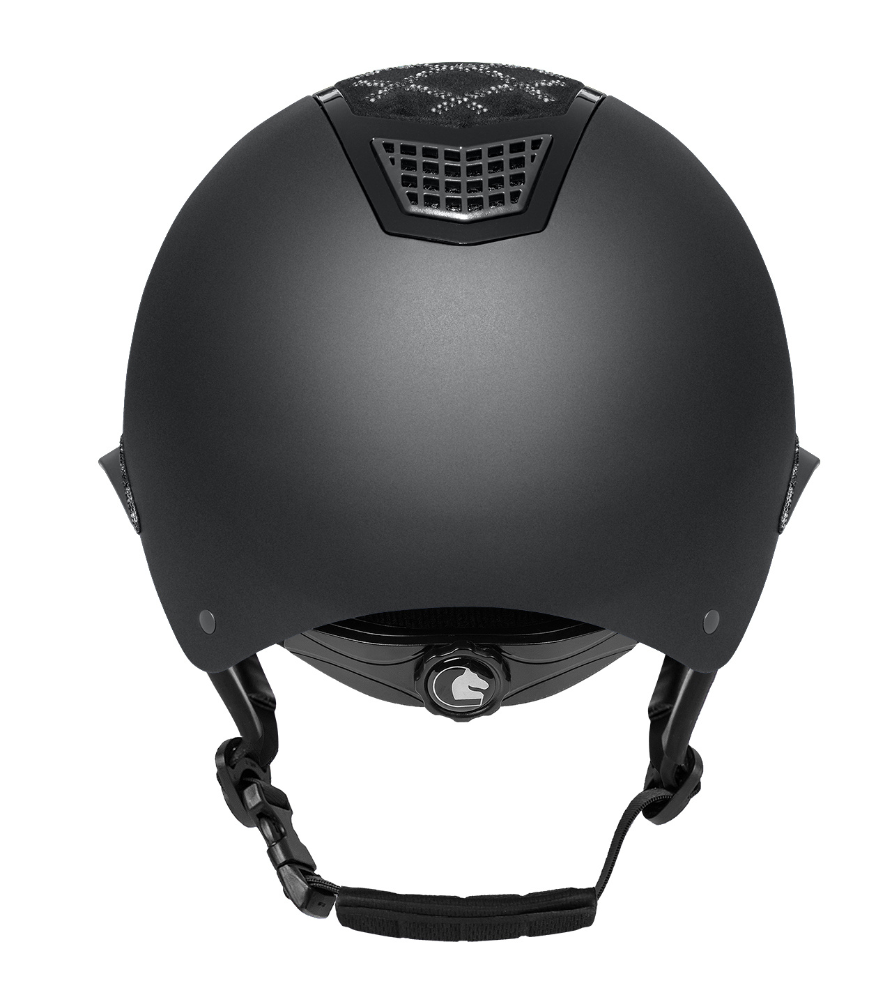 Model Spotlight Matt wyróżnia się matową skorupą zestawioną z efektownym, połyskującym topem, a całość dopełnia ozdobny detal przy mocowaniu daszka, który nadaje kaskowi elegancki, dopracowany i wyraźnie biżuteryjny charakter.