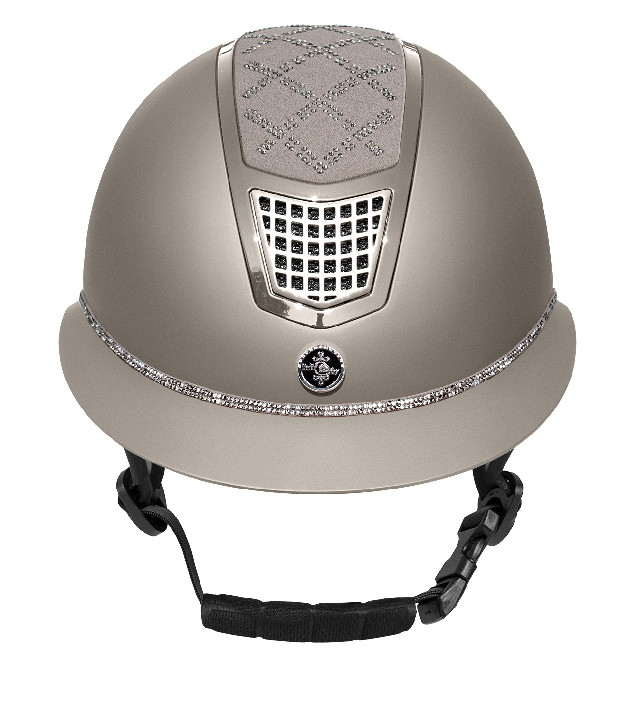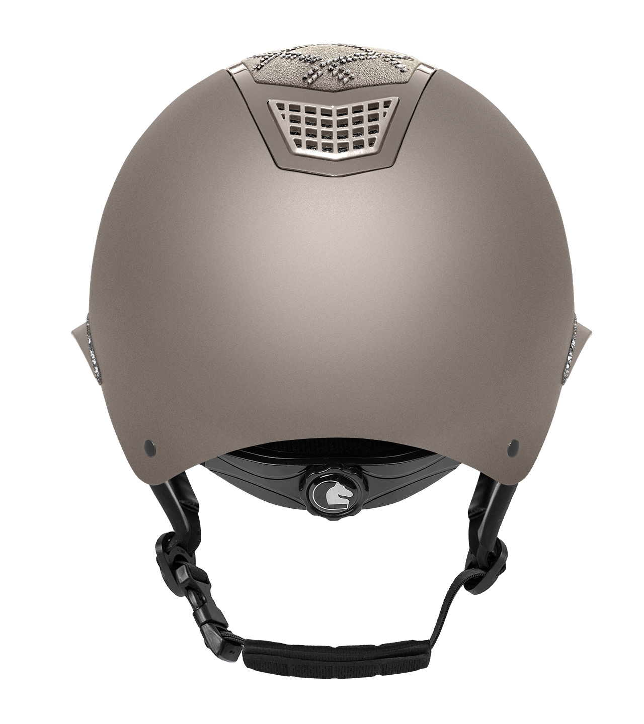Model Spotlight Matt wyróżnia się matową skorupą zestawioną z efektownym, połyskującym topem, a całość dopełnia ozdobny detal przy mocowaniu daszka, który nadaje kaskowi elegancki, dopracowany i wyraźnie biżuteryjny charakter.