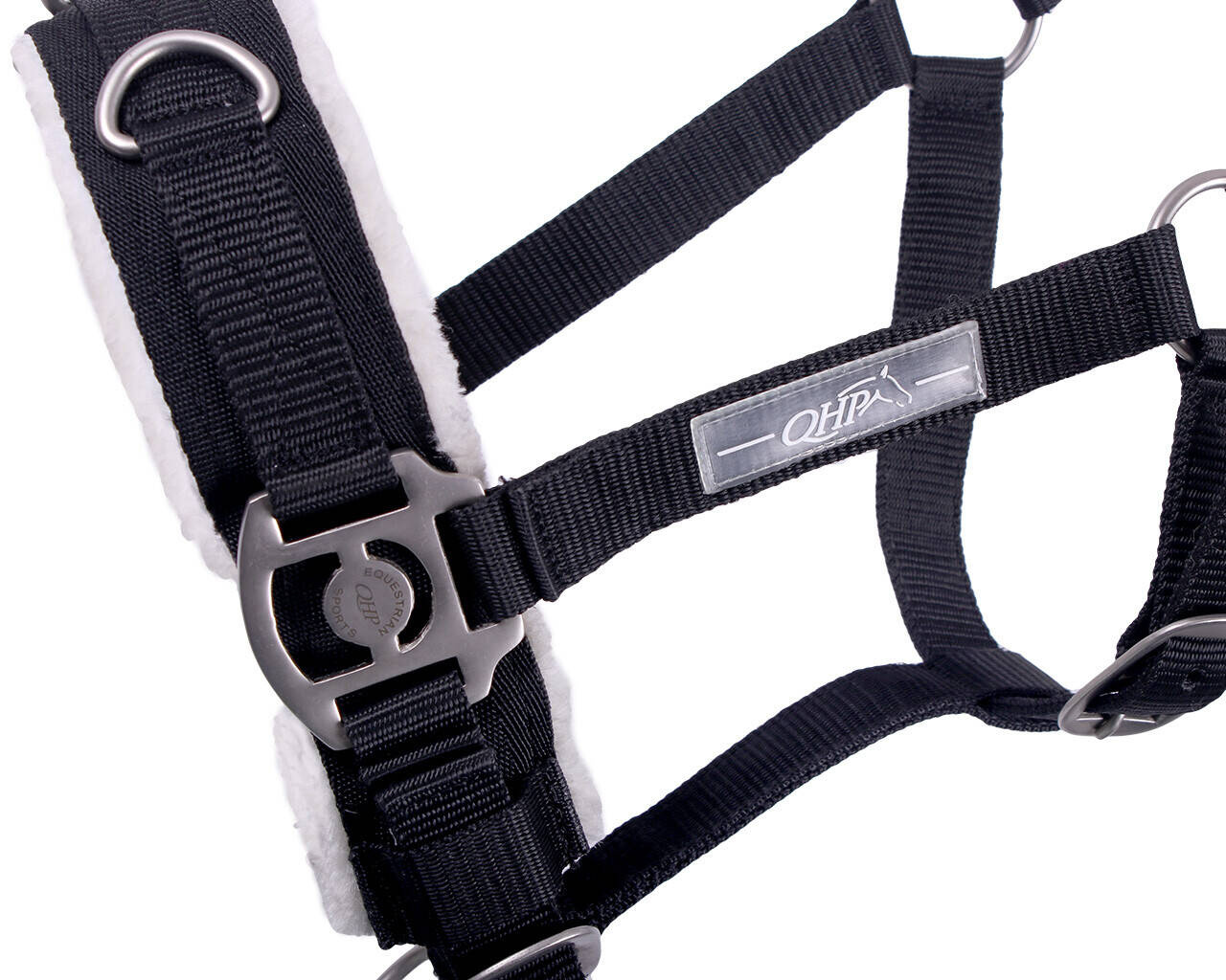 Ma potrójną możliwość regulacji dzięki czemu można go łatwo dopasować do głowy konia.