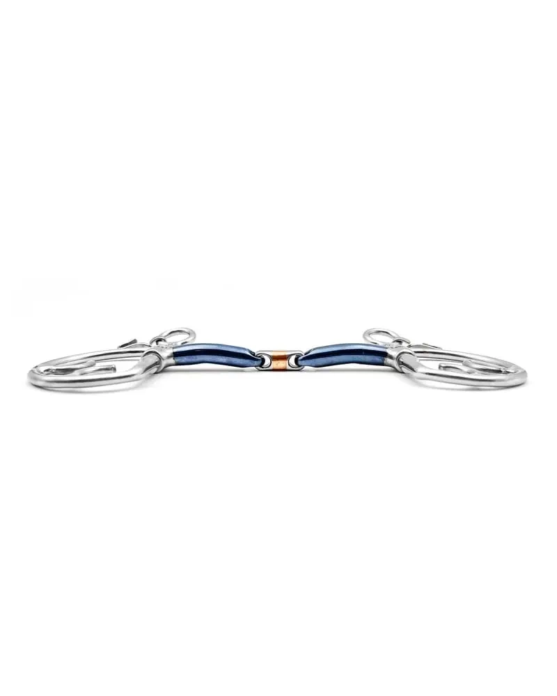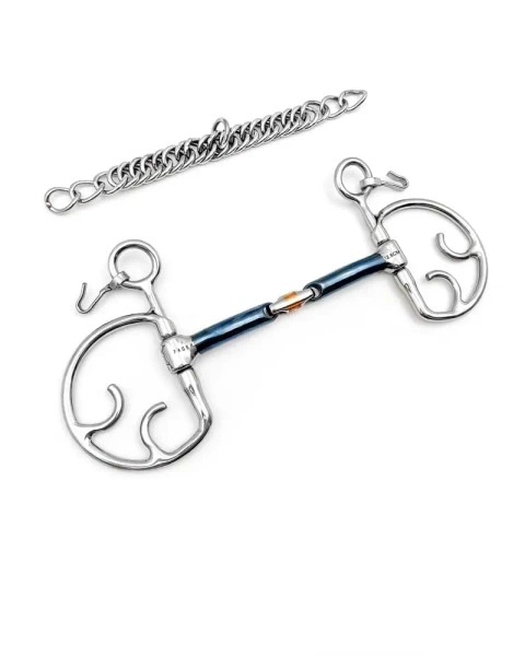 Sweet Iron (oksydowane żelazo) to materiał, który w trakcie użytkowania ulega naturalnemu procesowi utleniania, tworząc powierzchnię o specyficznym, „słodkim” smaku. Ten smak znacząco zwiększa wydzielanie śliny i zachęca konie do aktywnego poszukiwania kontaktu z ręką jeźdźca.