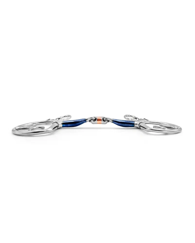 Sweet Iron (oksydowane żelazo) to materiał, który w trakcie użytkowania ulega naturalnemu procesowi utleniania, tworząc powierzchnię o specyficznym, „słodkim” smaku. Ten smak znacząco zwiększa wydzielanie śliny i zachęca konie do aktywnego poszukiwania kontaktu z ręką jeźdźca.