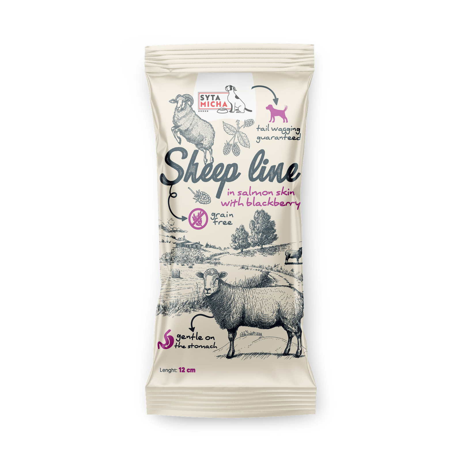 - Sheep line to seria gryzaków, które powstały z nieprzetworzonych komponentów, gdzie głównymi składnikami są skóra owcza i suszona owca.