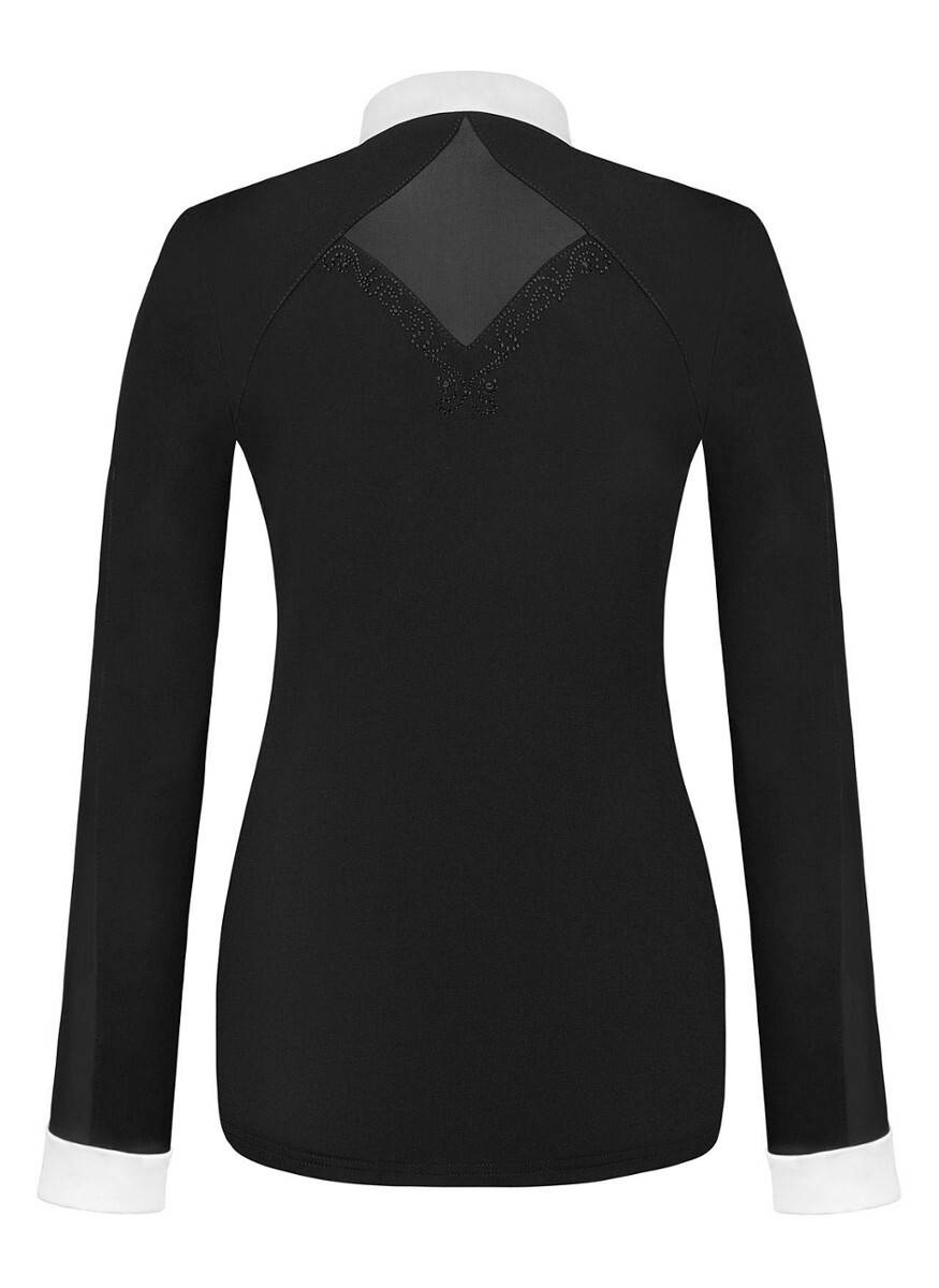 • Elegancka koszula konkursowa wykonana z elastycznej i oddychającej dzianiny z funkcją UVP. Posiada elastyczne wstawki z siatki z przodu, na plecach oraz rękawach. Ozdobiona kryształkami.
