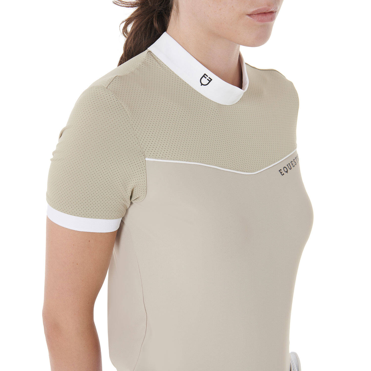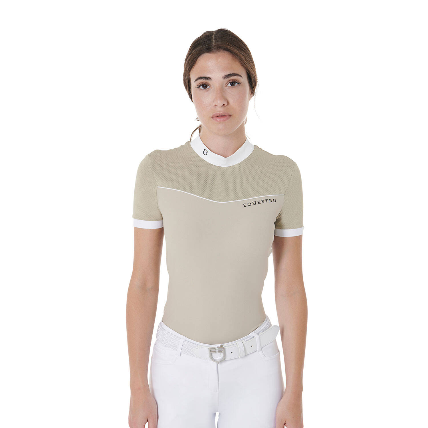 Ozdobiona logo Equestro i napisem na piersi wzdłuż szwu oraz rozcięciem z tyłu.