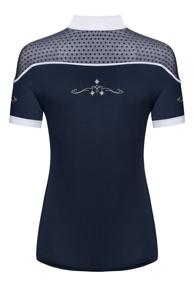 Elegancka koszulka konkursowa wykonana z elastycznej i oddychającej dzianiny technicznej.