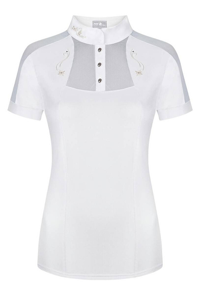 Elegancka koszulka konkursowa wykonana z elastycznej i oddychającej dzianiny technicznej.