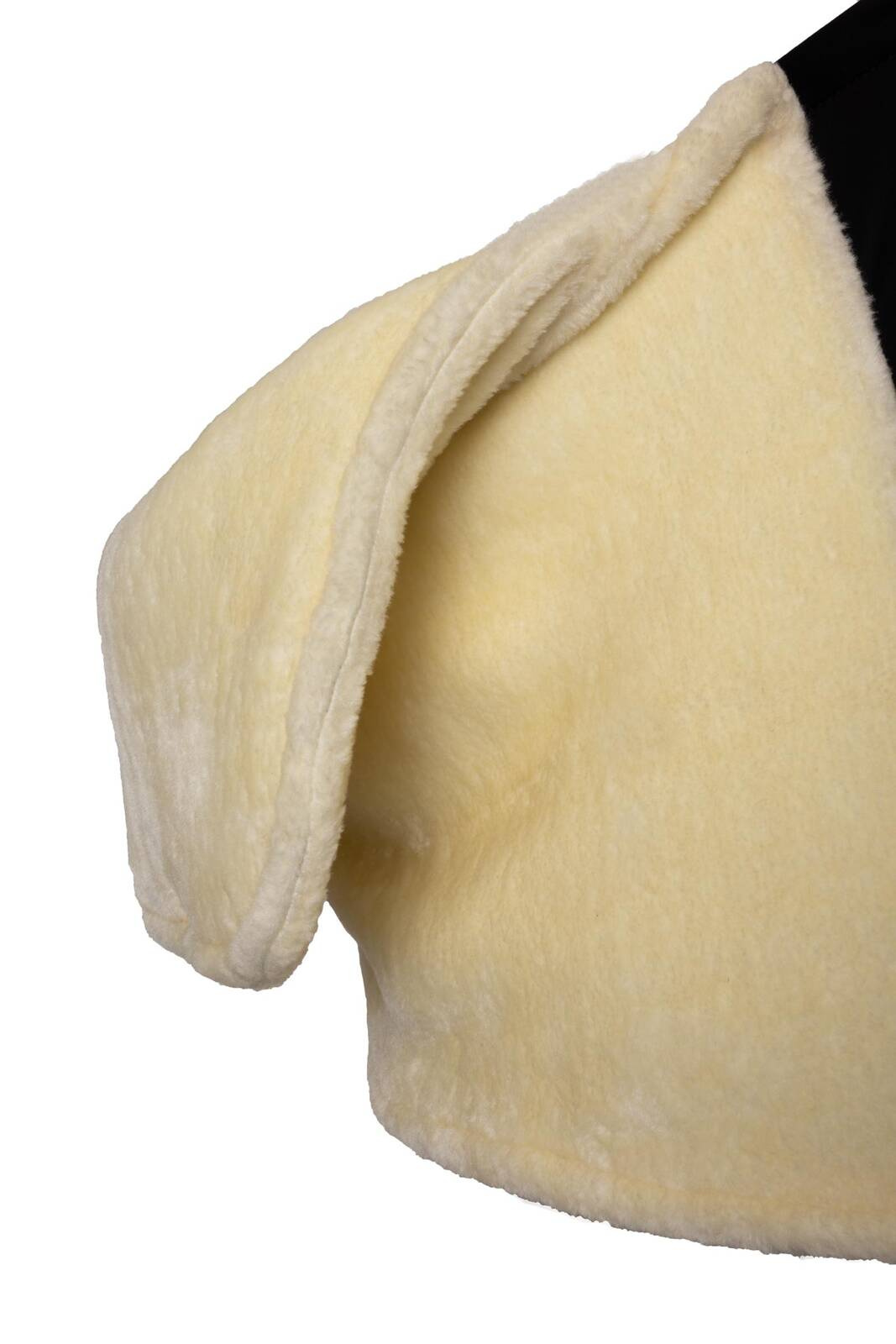 Przedni śliniaczek posiada wyściółkę ze sztucznego futra.