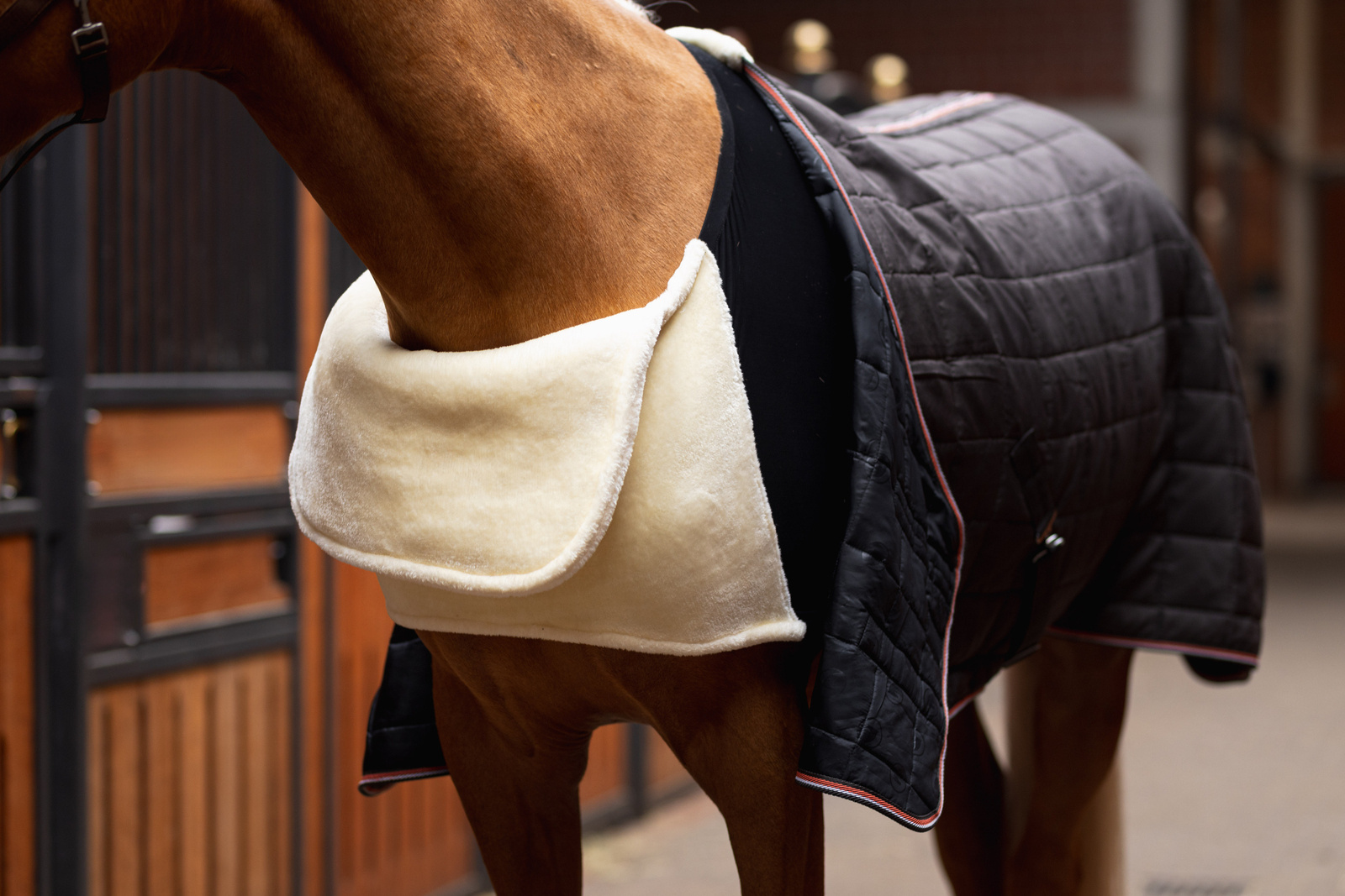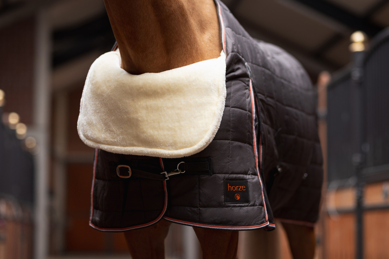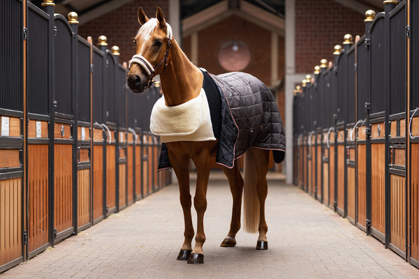 Zakładanie jest łatwe, wystarczy nasunąć ją na szyję konia i zapiąć za przednimi nogami.