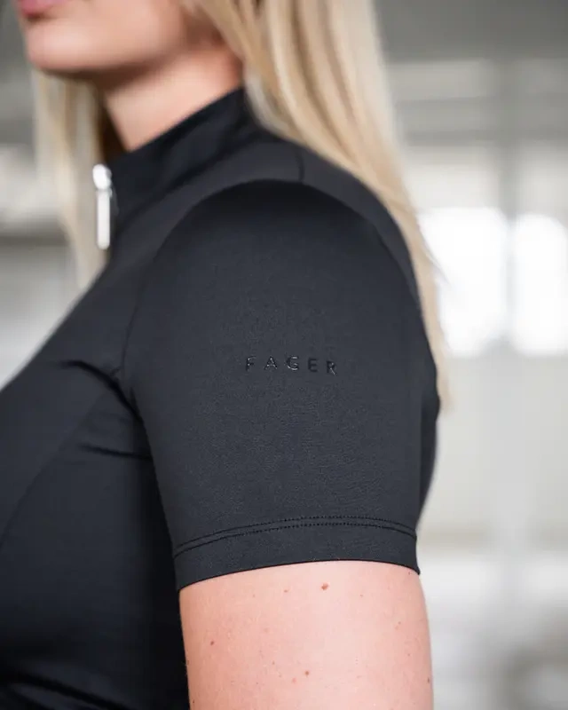 Eleganckie, subtelne logo Fager umieszczone na suwaku, z boku szyi oraz na lewym ramieniu podkreśla sportowy i nowoczesny styl.