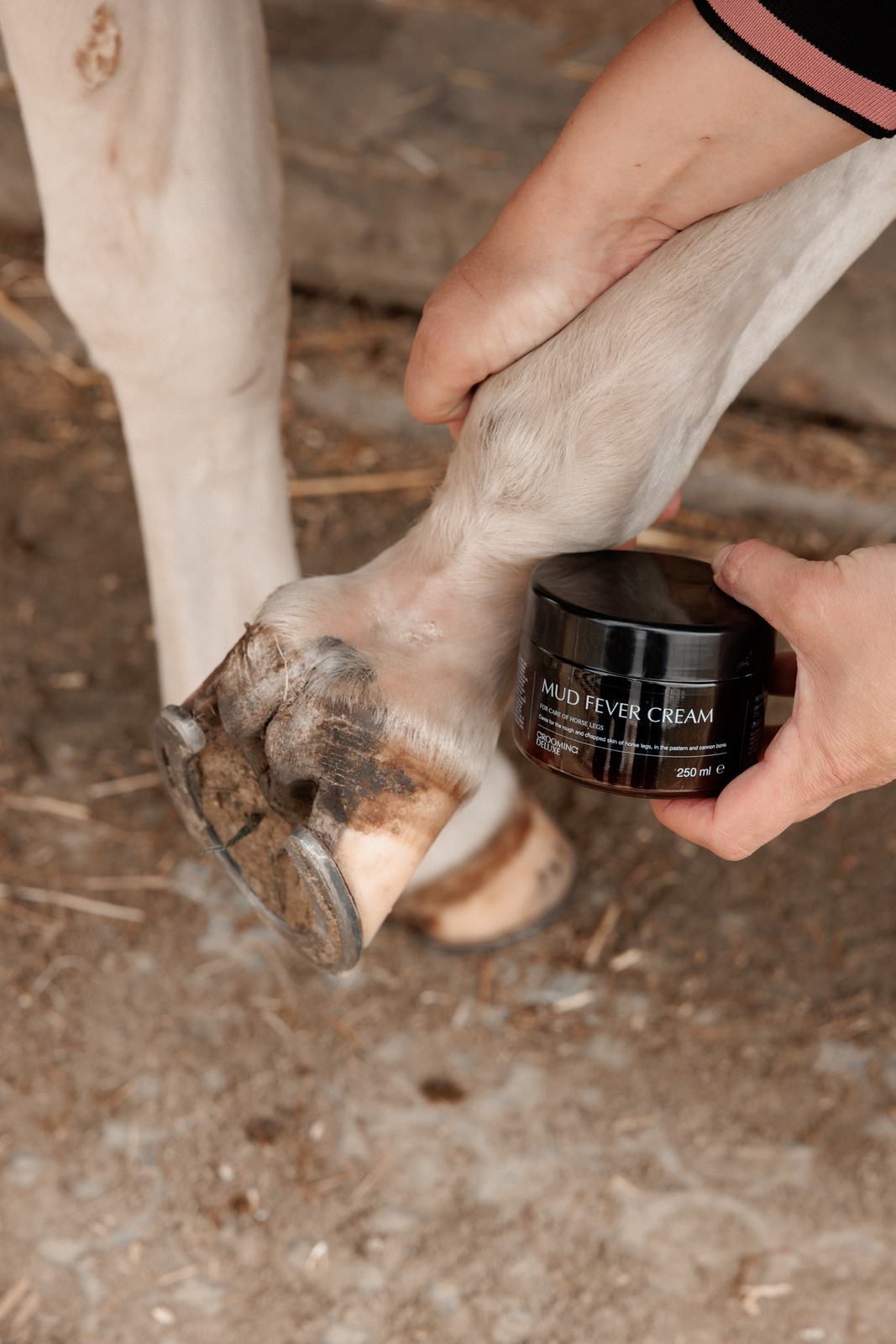 Formuła Mud Fever łączy w sobie działanie pielęgnacyjne i ochronne. Preparat intensywnie nawilża skórę, jednocześnie tworząc barierę zabezpieczającą przed dalszym przesuszeniem i negatywnym wpływem wilgoci, błota czy brudu. Dzięki temu krem jest szczególnie polecany w sezonie jesienno-zimowym oraz w okresach przejściowych, kiedy problem grudy i podrażnień skóry nóg występuje najczęściej.