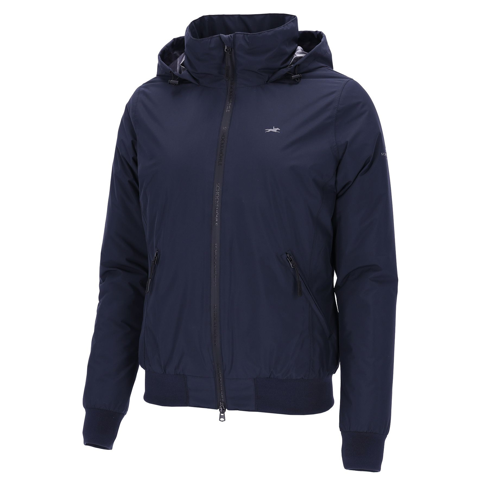 Wewnętrzna konstrukcja kurtki, wykończona elastycznymi ściągaczami w rękawach i w dolnej części, skutecznie chroni przed zimnym wiatrem, co jest szczególnie wygodne na korytarzach stajennych i podczas pracy o poranku.
