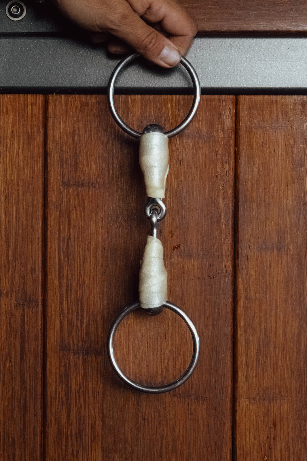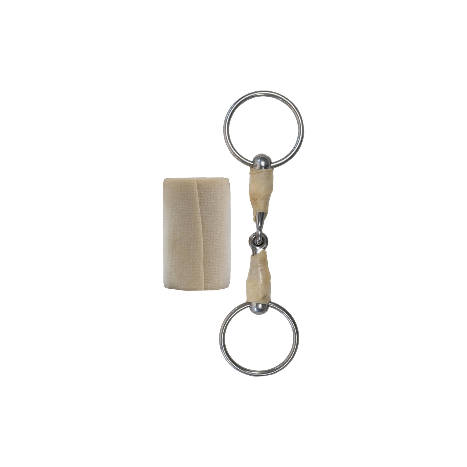 Materiał lateksowy jest rozciągliwy i bardzo dobrze dopasowuje się do kształtu wędzidła, dzięki czemu po prawidłowej aplikacji tworzy gładką, jednolitą powierzchnię. Zapewnia to stabilność owijki w trakcie pracy – nie przesuwa się i nie roluje, a jednocześnie pozostaje przyjemna w dotyku dla konia.