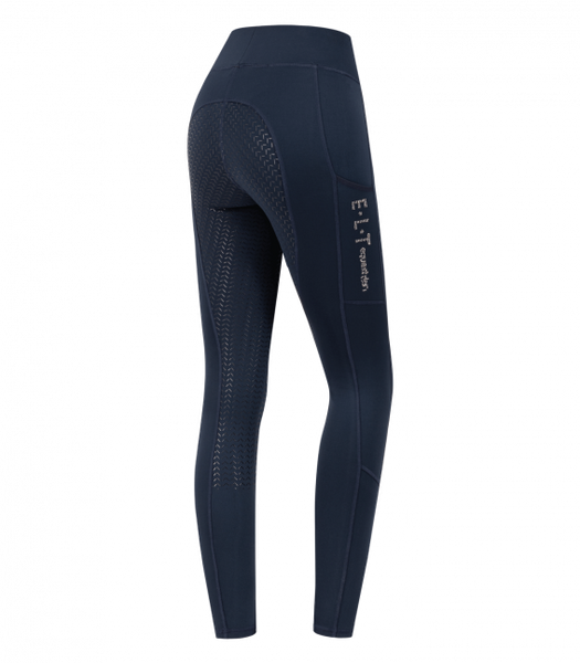 - Klasyczne legginsy jeździeckie z pełnym lejem silikonowym i wysokim stanem.