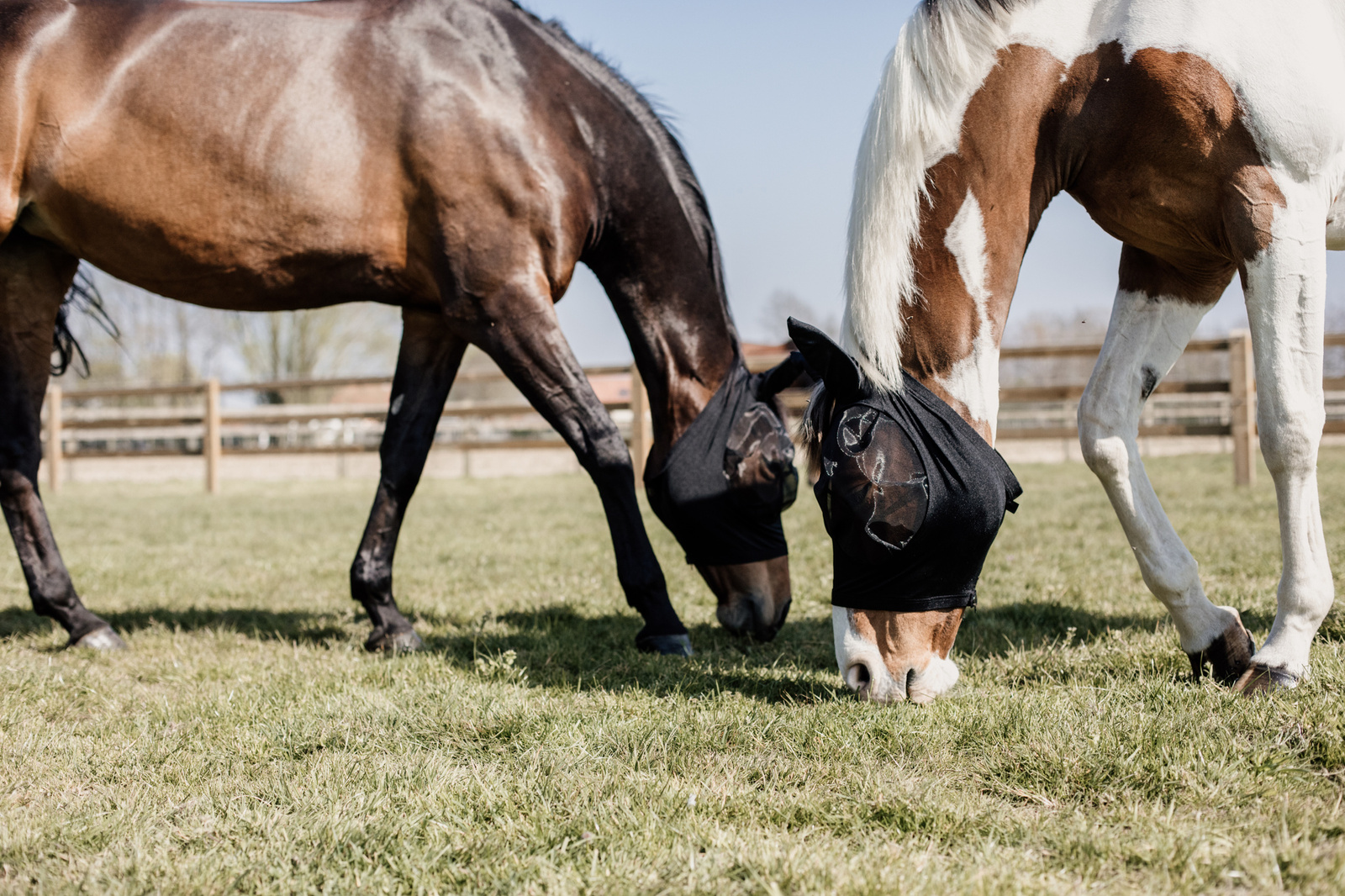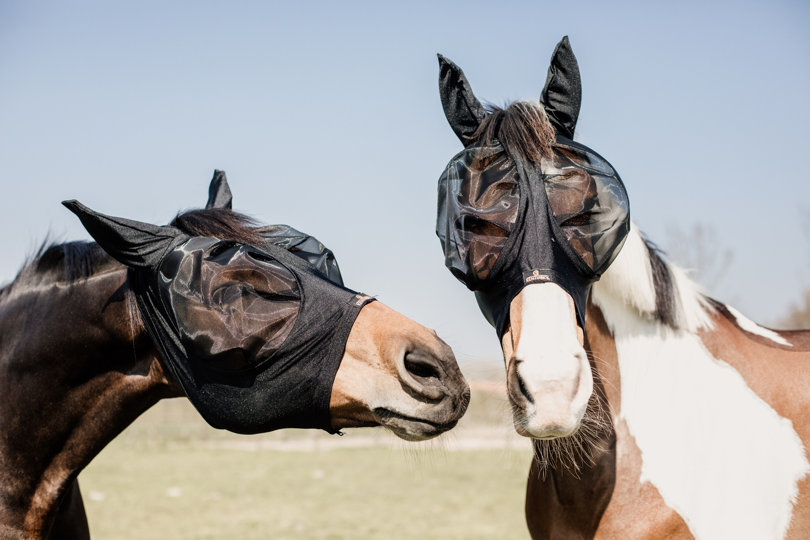 Maska przeciw owadom, zaprojektowana tak, aby idealnie przylegać do głowy konia i uniemożliwiać nawet najmniejszym owadom dostanie się pod materiał. Jej konstrukcja działa jak „druga skóra”, zapewniając komfort, swobodę ruchu oraz pełną widoczność, dzięki czemu koń nie czuje dyskomfortu ani obciążenia. To doskonały wybór dla koni wyjątkowo wrażliwych na muchy i meszki lub dla tych, które spędzają dużo czasu na padoku.