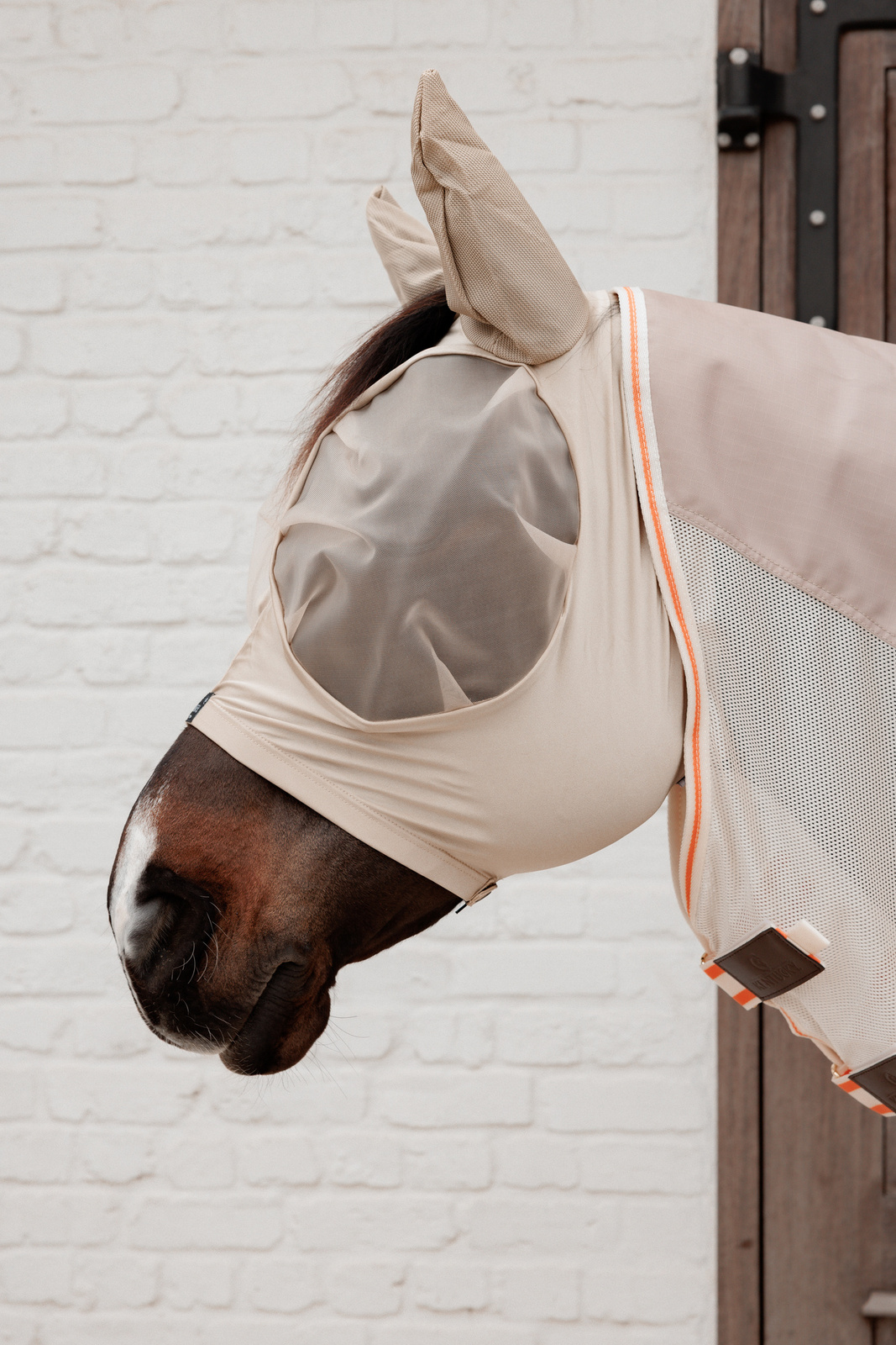 - Maska przeciw owadom, zaprojektowana tak, aby idealnie przylegać do głowy konia i uniemożliwiać nawet najmniejszym owadom dostanie się pod materiał.