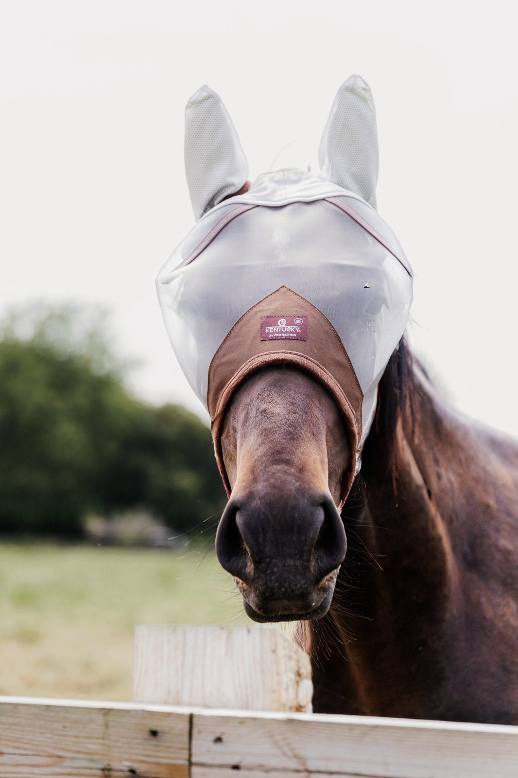 Maska przeciw owadom stworzona specjalnie dla koni wyjątkowo wrażliwych na muchy i inne insekty, które potrzebują dodatkowej ochrony zarówno oczu, jak i uszu, ale nie tolerują zakrywania nosa.