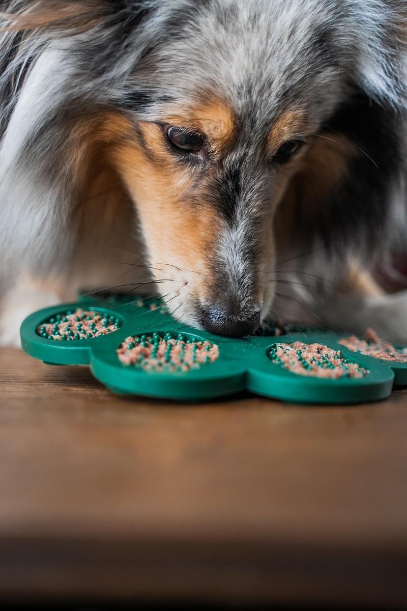 Lizanie, jako naturalne zachowanie u psów i kotów, pobudza wydzielanie endorfin, wpływając korzystnie na układ nerwowy i emocjonalny. Mata sensoryczna wykorzystuje tę zależność, wspierając wyciszenie i samoregulację zachowania zwierząt w trudnych sytuacjach – takich jak rozłąka z opiekunem, wizyta u weterynarza, podróż czy nadmiar bodźców.