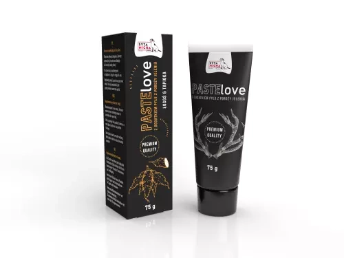 Atutem mięsnego kremu Pastelove jest obecność pyłu z poroża jelenia, który dzięki swoim aktywnym składnikom (chondroityna, glukozamina, kolagen, kwas hialuronowy, omega 3 i 6, wapń, magnez, EGF, IGF, aminokwasy) wspiera odporność, pracę stawów oraz mięśni. Ma działanie przeciwzapalne, przeciwbakteryjne, regeneracyjne i budulcowe.