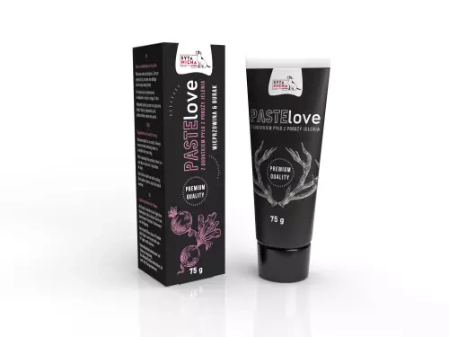 Atutem mięsnego kremu Pastelove jest obecność pyłu z poroża jelenia, który dzięki swoim aktywnym składnikom (chondroityna, glukozamina, kolagen, kwas hialuronowy, omega 3 i 6, wapń, magnez, EGF, IGF, aminokwasy) wspiera odporność, pracę stawów oraz mięśni. Ma działanie przeciwzapalne, przeciwbakteryjne, regeneracyjne i budulcowe.