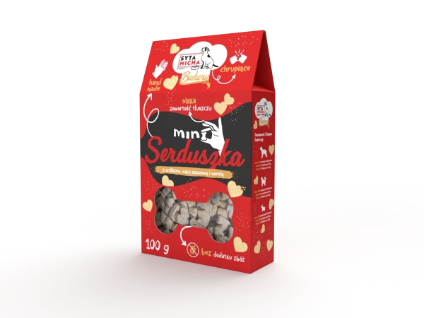 - Mini serduszka to ręcznie robione, pieczone ciastka dla psa.