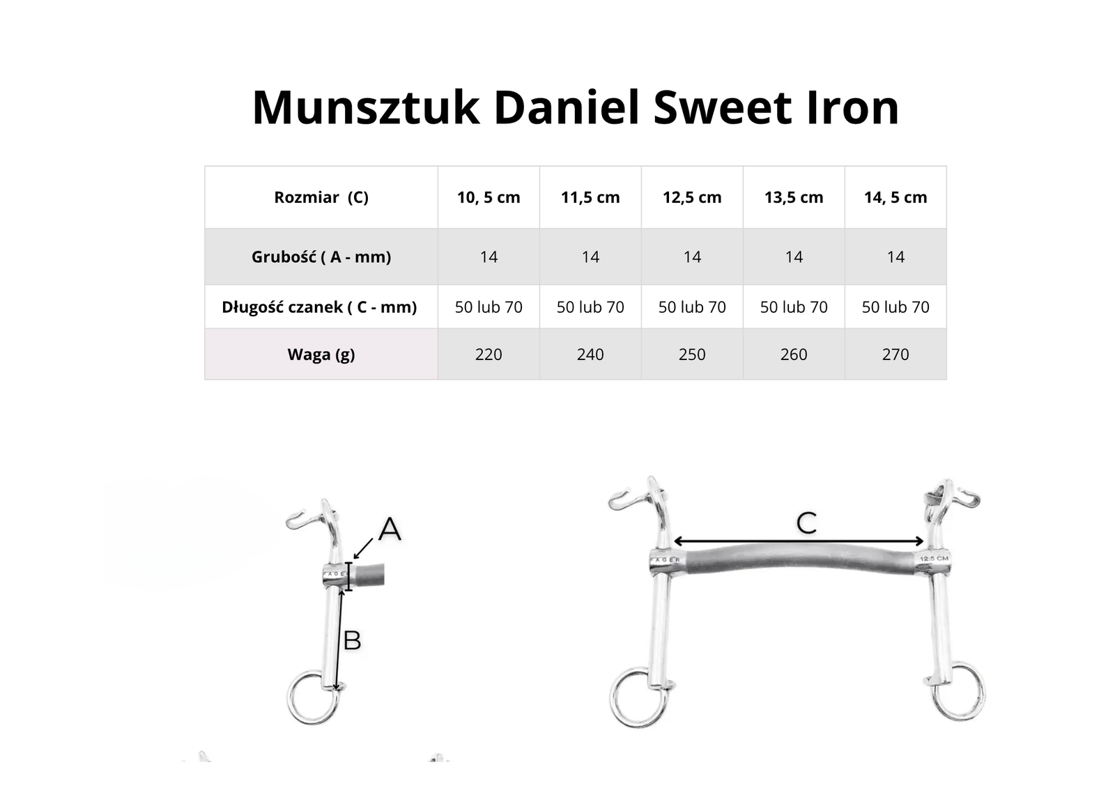 • Fager Daniel Sweet Iron to anatomicznie zaprojektowane wędzidło typu Weymouth, stworzone z myślą o koniach z dużym, mięsistym i wyjątkowo wrażliwym językiem.