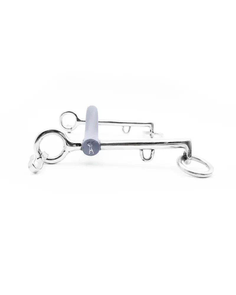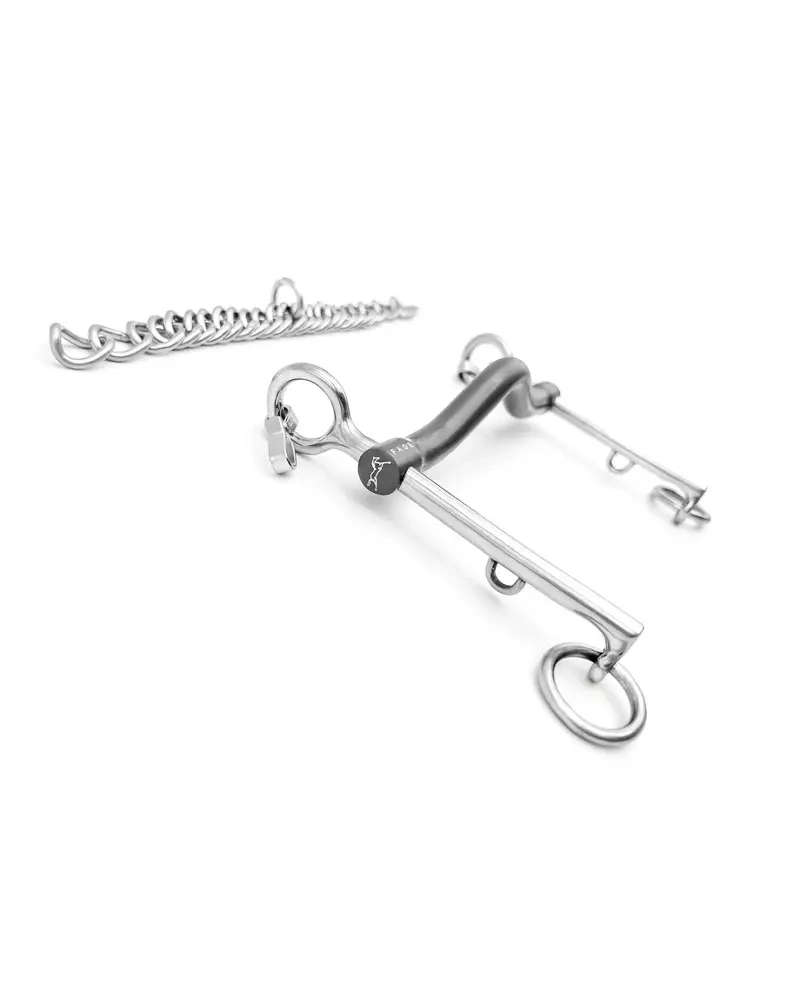Ścięgierz typu sztanga (prosty, niełamany) charakteryzuje się równomiernym i symetrycznym naciskiem na język i bezzębną część żuchwy. Działa bardziej przewidywalnie, co czyni je idealnym wyborem dla koni, które nie tolerują ruchomych elementów w pysku, reagują nerwowo na łamanie lub potrzebują wyraźniejszej stabilizacji. Sztanga często polecana jest także dla koni z problemami stomatologicznymi lub po zabiegach, gdzie równomierny rozkład nacisku ogranicza ryzyko podrażnień. Dodatkowo, posiada płaską i szerszą część nad językiem, która zapewnia komfort w pysku konia.