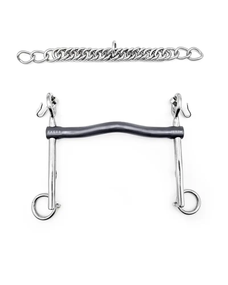 Fager Sofia to nowoczesne, lekkie i w pełni anatomiczne wędzidło munsztukowe, wykonane z najwyższej jakości tytanu, zaprojektowane specjalnie z myślą o koniach, które są silne, ale jednocześnie wrażliwe i źle znoszące nacisk na język lub dziąsła. Dzięki przemyślanej konstrukcji z portem odgiętym do przodu (a nie do góry, jak w klasycznych modelach), Sofia zapewnia znaczną ulgę dla języka i zmniejsza ryzyko podrażnień na bezzębnych brzegach żuchwy. Jest to wyjątkowe rozwiązanie dla koni, które stają się ciężkie na ręce, ale jednocześnie mają delikatną jamę ustną i łatwo rozwijają obtarcia lub ranki.
