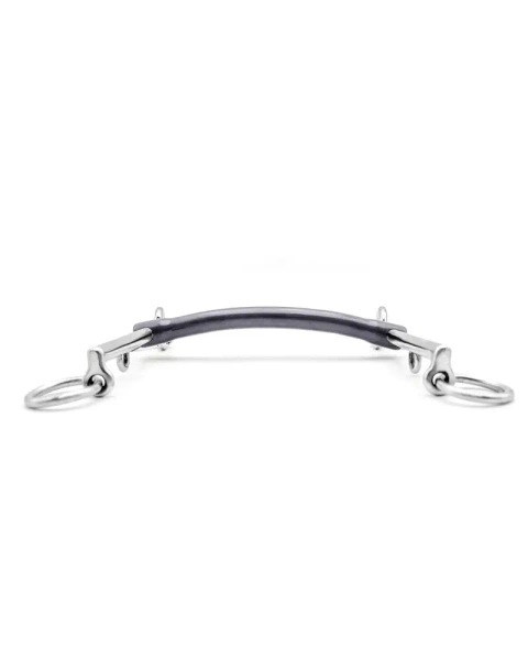 Ścięgierz typu sztanga (prosty, niełamany) charakteryzuje się równomiernym i symetrycznym naciskiem na język i bezzębną część żuchwy. Działa bardziej przewidywalnie, co czyni je idealnym wyborem dla koni, które nie tolerują ruchomych elementów w pysku, reagują nerwowo na łamanie lub potrzebują wyraźniejszej stabilizacji. Sztanga często polecana jest także dla koni z problemami stomatologicznymi lub po zabiegach, gdzie równomierny rozkład nacisku ogranicza ryzyko podrażnień. Dodatkowo, posiada płaską i szerszą część nad językiem, która zapewnia komfort w pysku konia.
