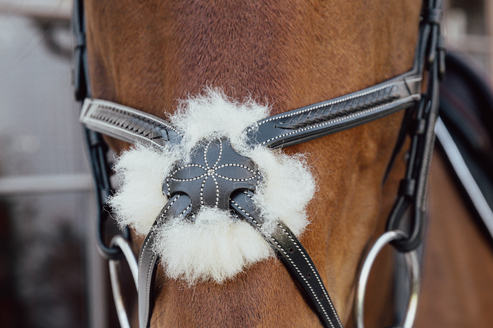Charakterystycznym elementem tego nachrapnika są plecione detale skórzane, które nadają mu unikalny i stylowy wygląd.