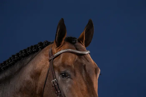 - Naczółek opadający ozdobiony srebrnymi kwadracikami.