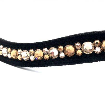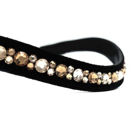 - Ręcznie wykonany naczółek ozdobiony kryształkami w odcieniach złota.