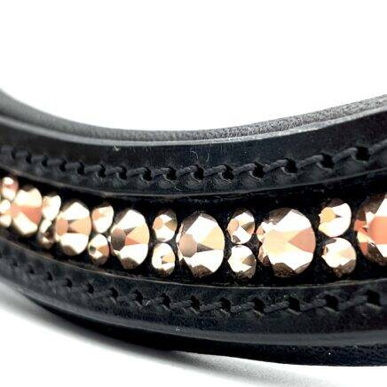 Ręcznie wykonany naczółek ozdobiony kryształkami w kolorze różowego złota.