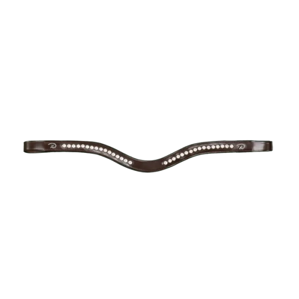 - Naczółek opadający, ozdobiony białymi kamieniami Swarovski. Na środku ma wytłoczone logo marki.