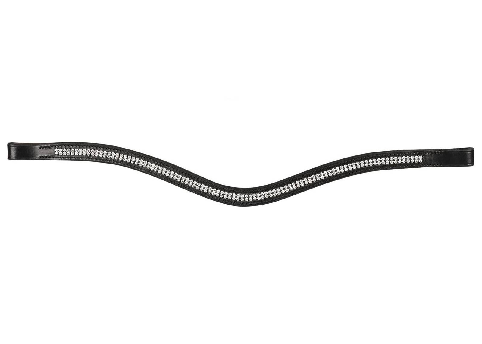 Lekko wygięty naczółek ozdobiony dwoma rzędami srebrnych kryształków.