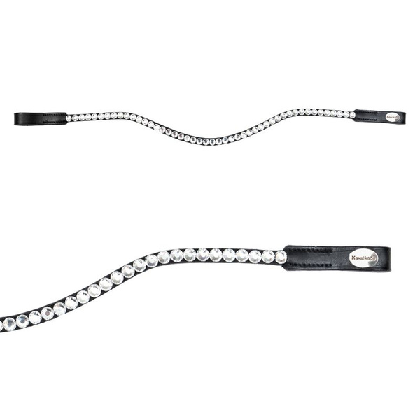 - Lekko opadający naczółek o smukłym kroju, zdobiony dużymi kryształkami.