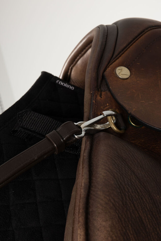 Posiada regulowane paski, które pozwalają na idealne dopasowanie do różnych koni i siodeł.