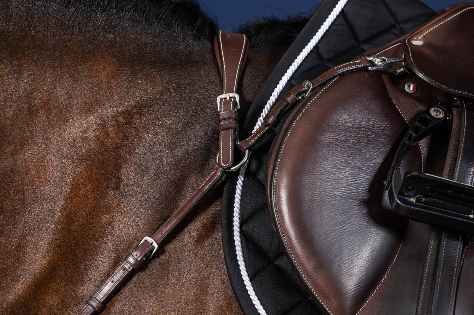 Po bokach ma elastyczne wstawki o długości 6 cm, które zapewniają dopasowanie do konia.