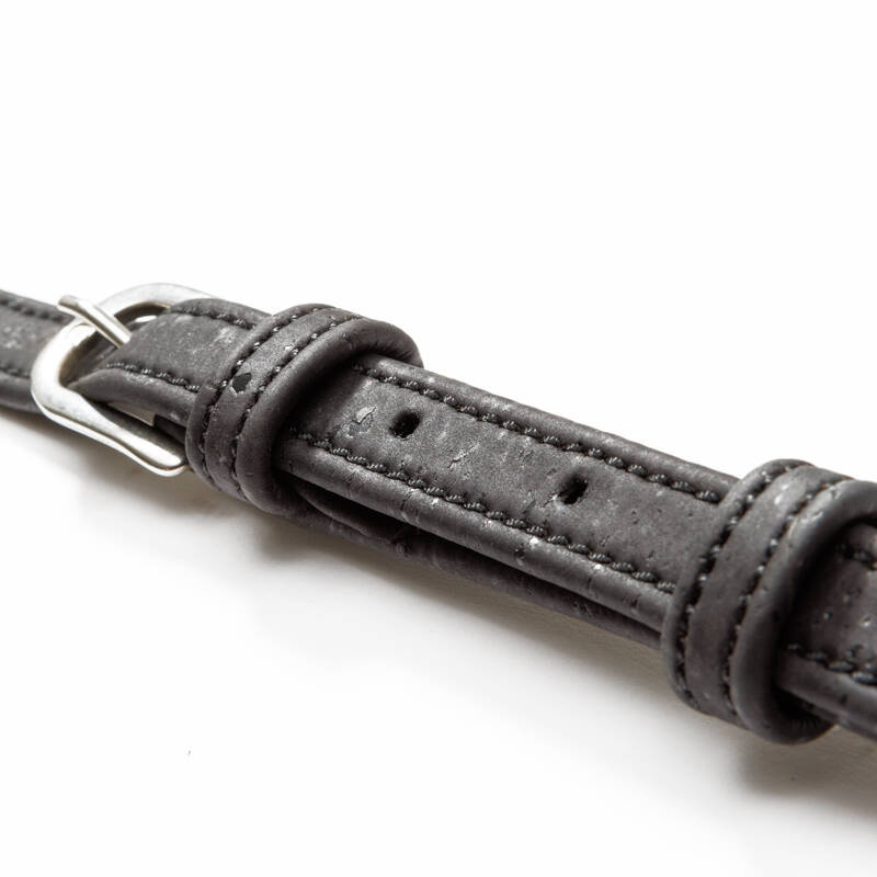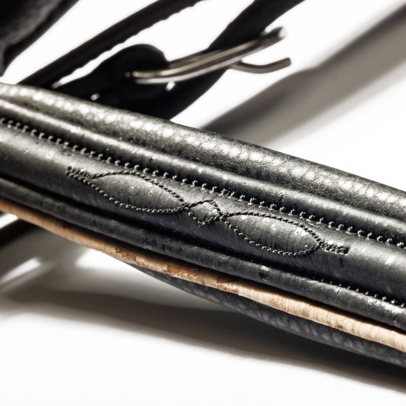 Napierśnik 3-punktowy, jest wąski i elegancko skrojony, z kontrastową korkową lamówką jako elementem dekoracyjnym.