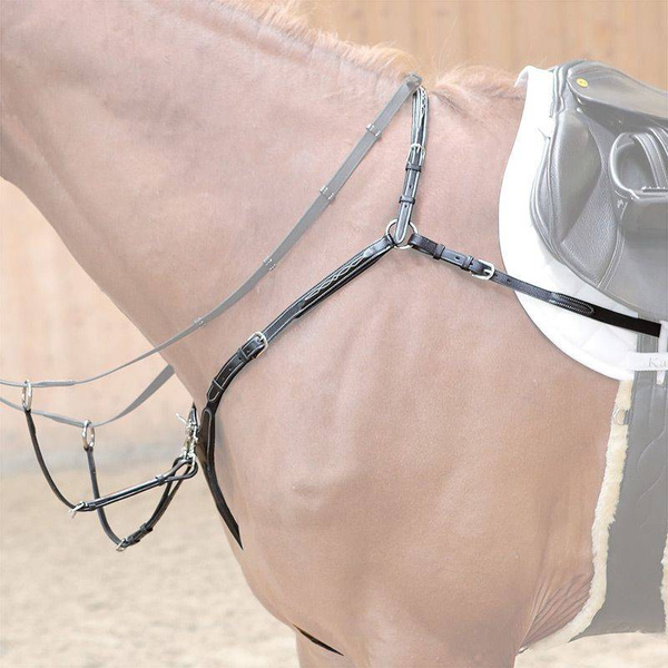 - Wykonany z wysokiej jakości, miękkiej skóry. Wytoczek zapinany za pomocą karabińczyków.