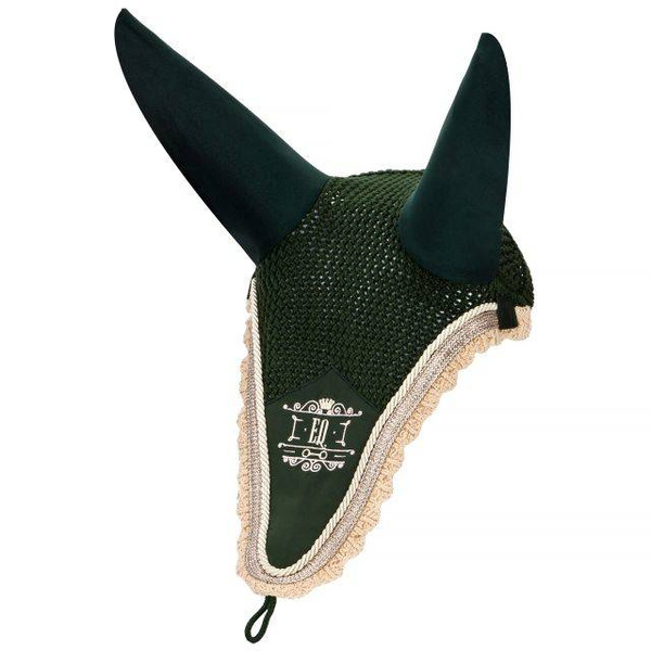 Zdobione herbowym haftem i błyszczącą tasiemką.