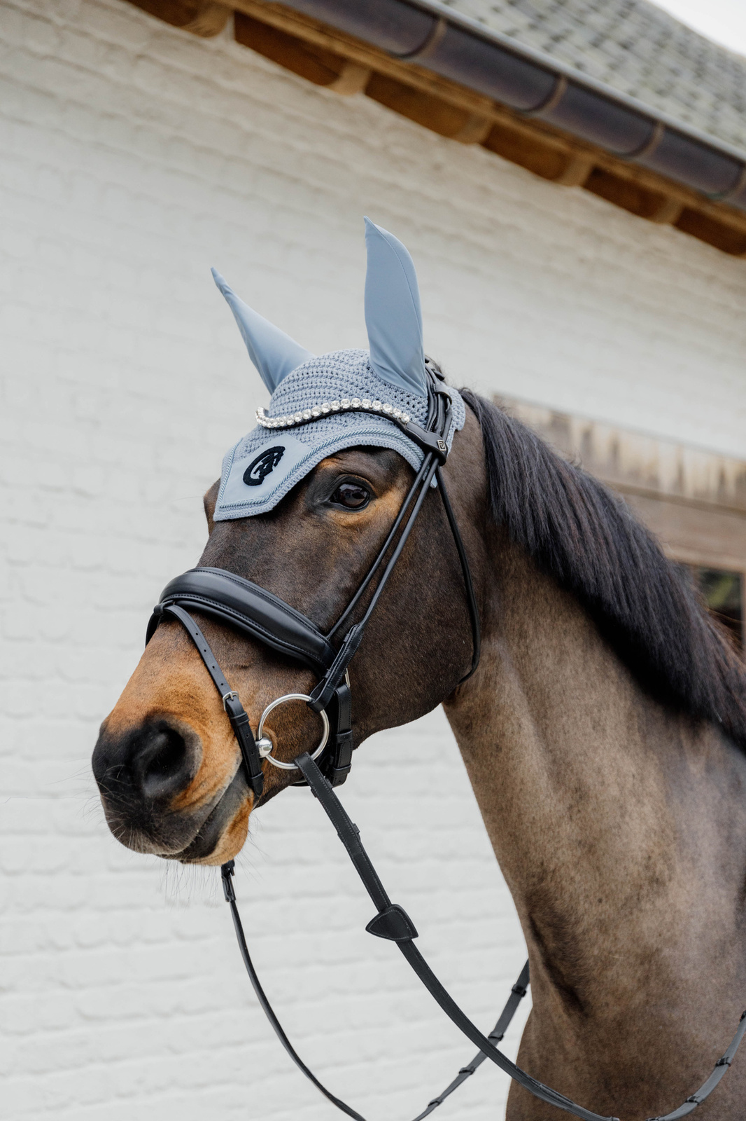 Nauszniki wykonane są z gęstej, starannie dzianej tkaniny, która cechuje się wysoką trwałością i estetycznym wyglądem nawet przy intensywnym użytkowaniu. Część uszna została uszyta z elastycznego materiału, który idealnie dopasowuje się do kształtu uszu konia, nie uciska i nie ogranicza naturalnego ruchu, a jednocześnie skutecznie blokuje owady.